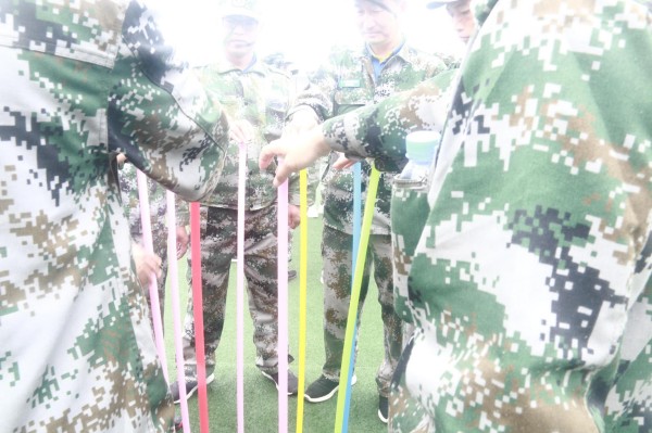 参与挑战的学生围成一个圆圈,事先会发给每个人一根塑料棍,学生们需要在杆子不着地、不能用手去抓杆子等等规则下去完成一个圆的走动。让学生明白团队是一个整体,每个人都像是这个齿轮上的一个齿,少了谁都不能正常运。
