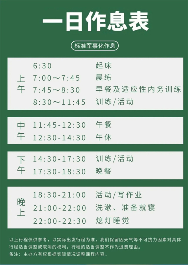 保险:参营期间为学员统-购买意外保险。
