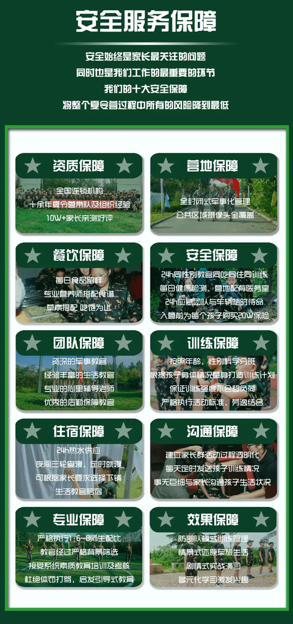 以上就是小编给大家推荐的点将军事夏令营的介绍啦,这次训练,不仅仅是锻炼你的身体!我们还将带你走进历史悠久的军事文化,了解国家的英勇历程,不论你是想拥有军人梦想,还是平凡的青少年,这个夏令营都将为你的人生加码!