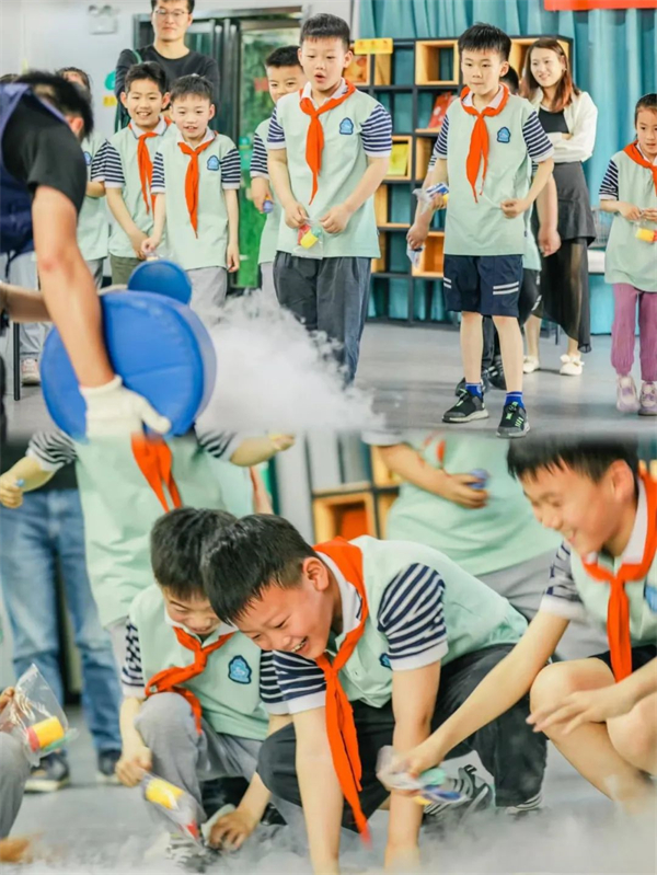 星空梦想科学秀开启奇妙之旅。学员们在液氮大爆炸、空气动力波等趣味表演中踊跃互动,深入体验科学的神奇魅力。